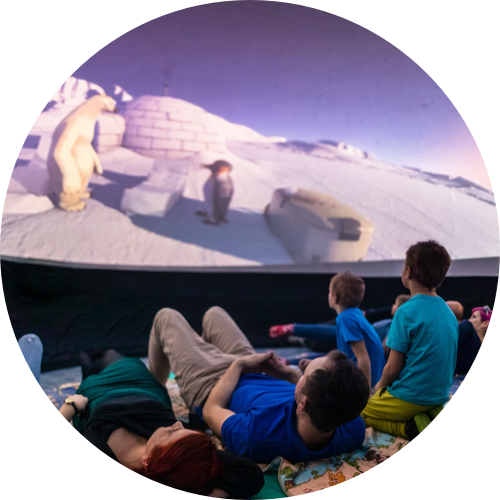 Naše mobilní planetárium je postavené na nejmodernějších projektorech a speciálně upraveném povrchu kupole, kde se diváci cítí součástí vesmírného dobrodružství, a to bez potřeby 3D brýlí. Programy jsou vhodné pro všechny věkové kategorie a filmy vybíráme vždy na míru Vašim potřebám.